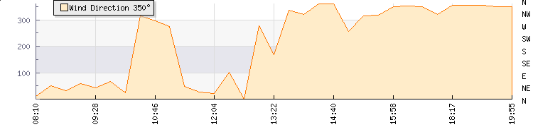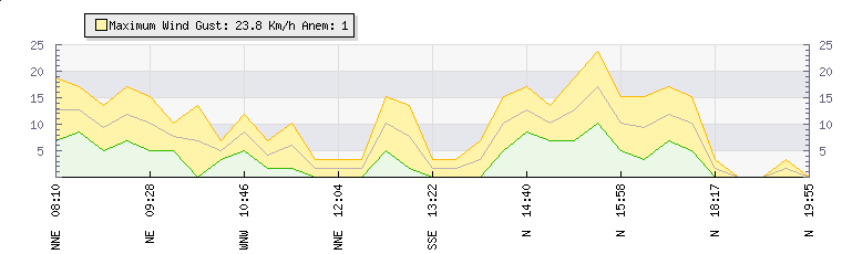 In the last few minutes the wind was Northerly at an average speed of 2 kmh, reaching up to 3 kmh and a low of 0 kmh. The gust strength is3 kmh above the minimum speed |