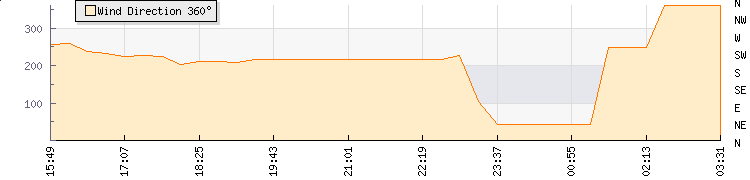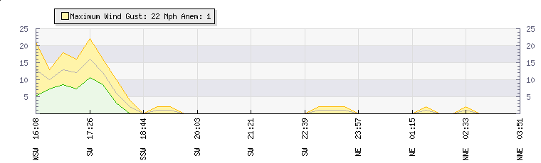 In the last few minutes the wind was North Easterly at an average speed of 0 mph, reaching up to 0 mph and a low of 0 mph. The gust strength is0 mph above the minimum speed |