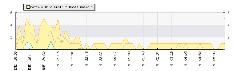 In the last few minutes the wind was Northerly at an average speed of 1 knots, reaching up to 1 knots and a low of 0 knots. The gust strength is1 knots above the minimum speed |