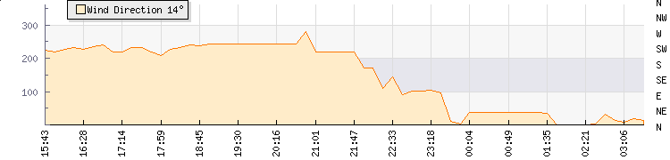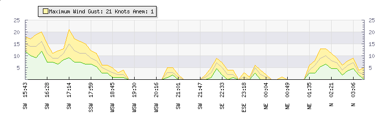 In the last few minutes the wind was North Easterly at an average speed of 1 knots, reaching up to 1 knots and a low of 0 knots. The gust strength is1 knots above the minimum speed |