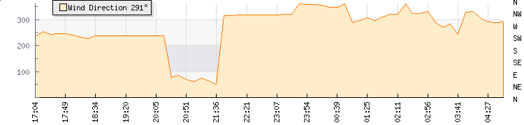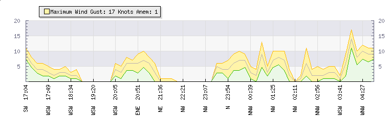 In the last few minutes the wind was North Westerly at an average speed of 2 knots, reaching up to 4 knots and a low of 0 knots. The gust strength is4 knots above the minimum speed |