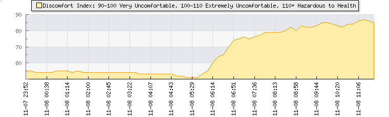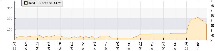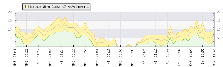 In the last few minutes the wind was North North East at an average speed of 1 kmh, reaching up to 2 kmh and a low of 0 kmh. The gust strength is2 kmh above the minimum speed |