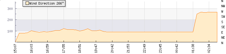 In the last few minutes the wind was Easterly at an average speed of 6 kmh, reaching up to 8 kmh and a low of 4 kmh. The gust strength is4 kmh above the minimum speed |