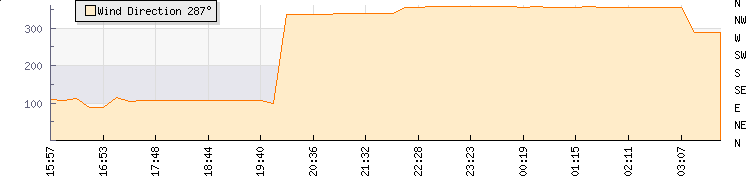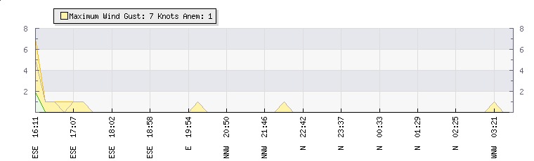 In the last few minutes the wind was Northerly at an average speed of 0 knots, reaching up to 0 knots and a low of 0 knots. The gust strength is0 knots above the minimum speed |