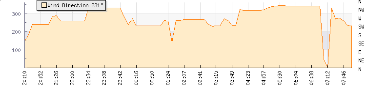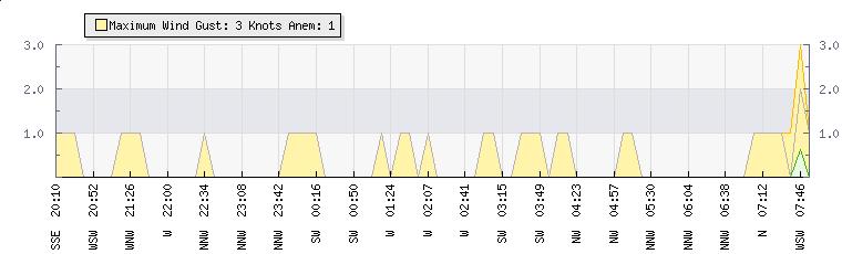 In the last few minutes the wind was North North West at an average speed of 0 knots, reaching up to 0 knots and a low of 0 knots. The gust strength is0 knots above the minimum speed |