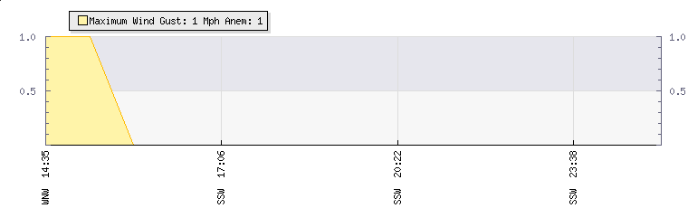 In the last few minutes the wind was South South West at an average speed of 0 mph, reaching up to 0 mph and a low of 0 mph. The gust strength is0 mph above the minimum speed |