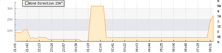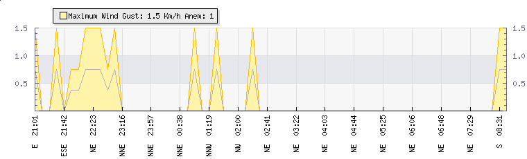In the last few minutes the wind was North Easterly at an average speed of 0 kmh, reaching up to 0 kmh and a low of 0 kmh. The gust strength is0 kmh above the minimum speed |