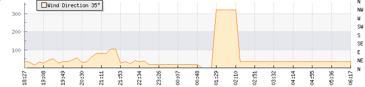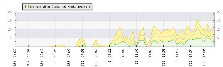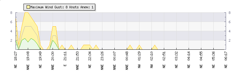 In the last few minutes the wind was North Easterly at an average speed of 0 knots, reaching up to 0 knots and a low of 0 knots. The gust strength is0 knots above the minimum speed |