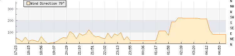In the last few minutes the wind was South Westerly at an average speed of 0 knots, reaching up to 0 knots and a low of 0 knots. The gust strength is0 knots above the minimum speed |