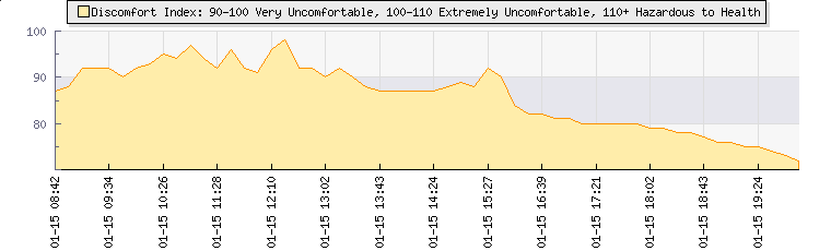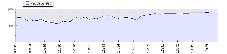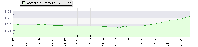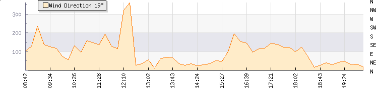 In the last few minutes the wind was Easterly at an average speed of 5 mph, reaching up to 9 mph and a low of 2 mph. The gust strength is7 mph above the minimum speed |