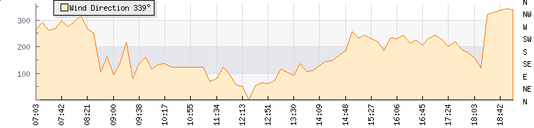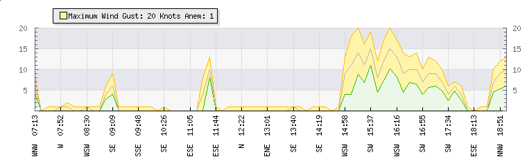 In the last few minutes the wind was South South West at an average speed of 10 knots, reaching up to 14 knots and a low of 6 knots. The gust strength is8 knots above the minimum speed |