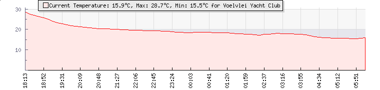 | GPS Co-ordinates: | S 33º 22' 01, E 19º 2' 01 | | ASL: | 253 feet | | Sunrise / Sunset: | 05:28 / 19:49 | | Beaufort Scale: | Light Breeze |