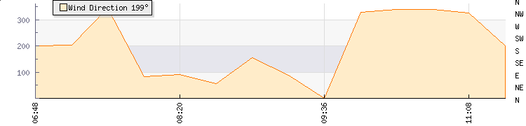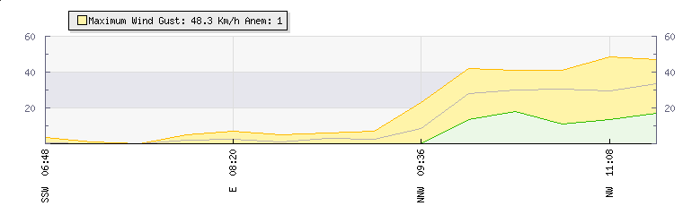 In the last few minutes the wind was North North West at an average speed of 0 kmh, reaching up to 0 kmh and a low of 0 kmh. The gust strength is0 kmh above the minimum speed |