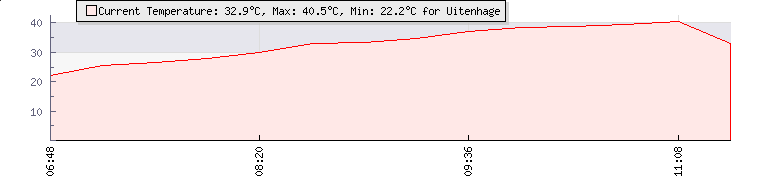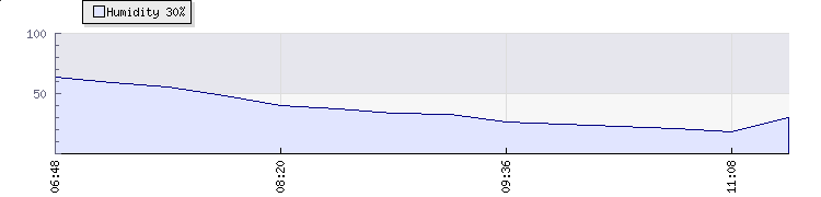 Wind Gust: | 1 km/h | Min Temp: | 25.6 °C | Max Temp: | 26.5 °C | Wind Average: | 0 km/h | Min Hum: | 56 % | Max Hum: | 59 % | |  |