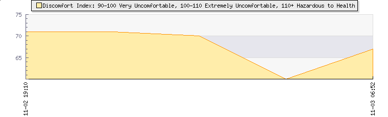 | Wind Speed: | 0|1|3 knots | Wind Direction: | SSW 201° | Temperature: | 17.9°C | | Wet Bulb: | 14.3°C | Discomfort: | 72 | Humidity: | 70% | | Rainfall Today: | 0mm | 12 hrs Rainfall: | 0mm | 24 hrs Rainfall: | 0mm | | Barometer: | 1020mb | Dew Point: | 12.3°C | Clouds AGL: | 2221ft (677 m) | | Density-Alt: | 627ft (191 m) | Fire Danger: | |