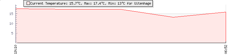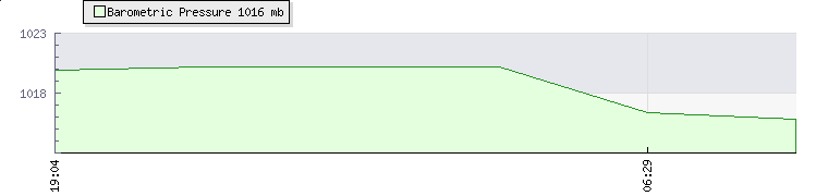 | Wind Gust: | 18 knots | Min Temp: | 17.3 °C | Max Temp: | 24.9 °C | | Wind Average: | 12 knots | Min Hum: | 43 % | Max Hum: | 70 % | |  |