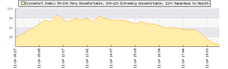 | Wind Gust: | 22 mph | Min Temp: | 17.7 °C | Max Temp: | 30.4 °C | | Wind Average: | 16 mph | Min Hum: | 41 % | Max Hum: | 77 % | |  |