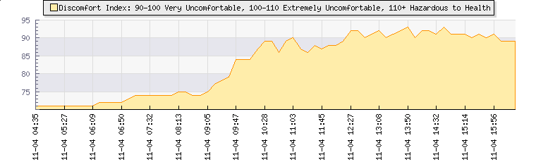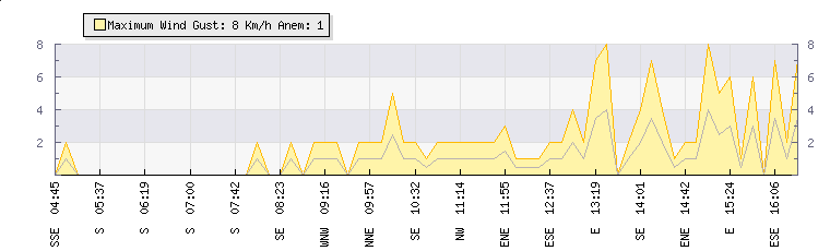 In the last few minutes the wind was North Westerly at an average speed of 1 kmh, reaching up to 2 kmh and a low of 0 kmh.  The gust strength is2 kmh above the minimum speed             |