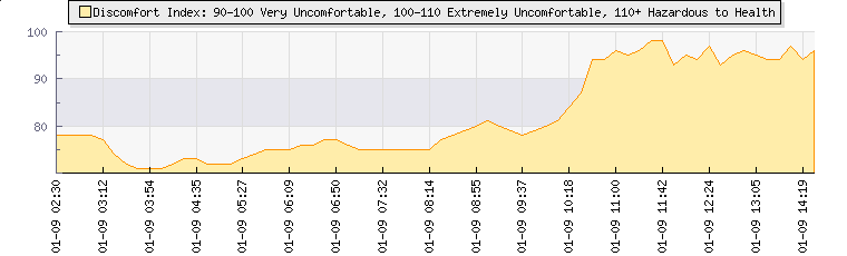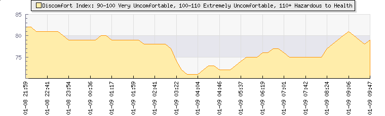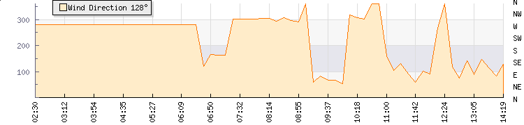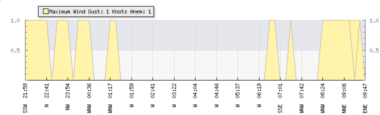 In the last few minutes the wind was South Westerly at an average speed of 1 knots, reaching up to 1 knots and a low of 0 knots. The gust strength is1 knots above the minimum speed |