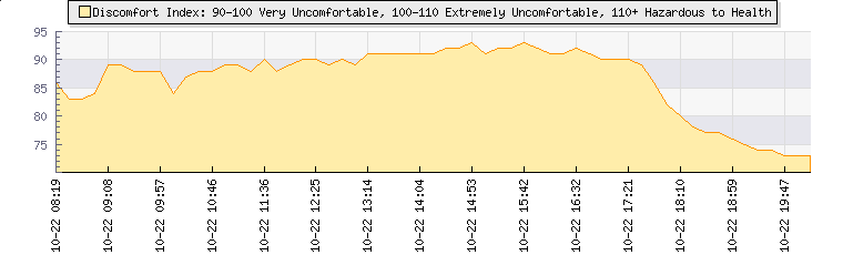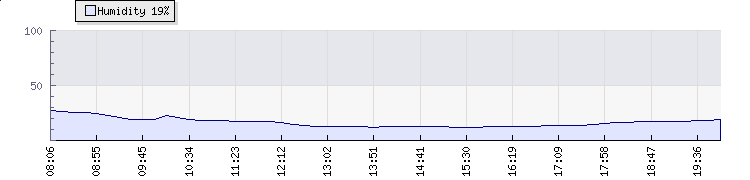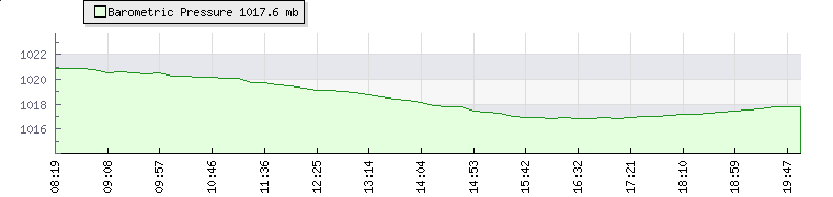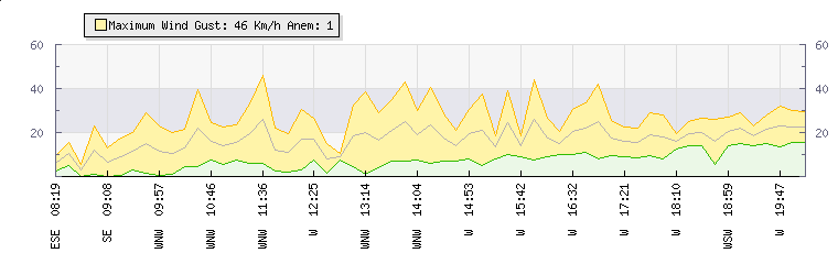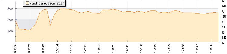 In the last few minutes the wind was South Westerly at an average speed of 13 kmh, reaching up to 21 kmh and a low of 4 kmh. The gust strength is17 kmh above the minimum speed |