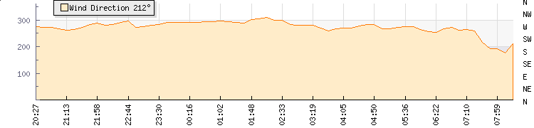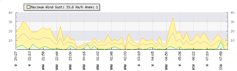 In the last few minutes the wind was Westerly at an average speed of 9 kmh, reaching up to 19 kmh and a low of 0 kmh. The gust strength is19 kmh above the minimum speed |