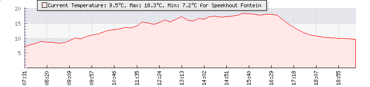 | GPS Co-ordinates: | S 31º 57' 01, E 24º 57' 23 | | ASL: | 4921 feet | | Sunrise / Sunset: | 06:45 / 17:52 | | Beaufort Scale: | Light Air |