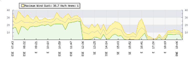In the last few minutes the wind was Easterly at an average speed of 1 kmh, reaching up to 3 kmh and a low of 0 kmh. The gust strength is3 kmh above the minimum speed |