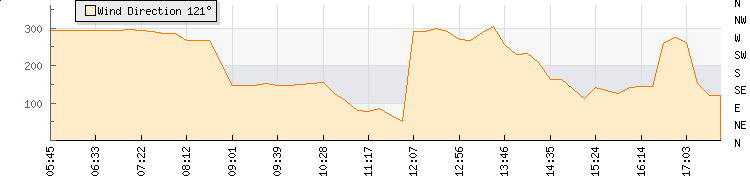 In the last few minutes the wind was South South East at an average speed of 5 kmh, reaching up to 8 kmh and a low of 2 kmh. The gust strength is6 kmh above the minimum speed |