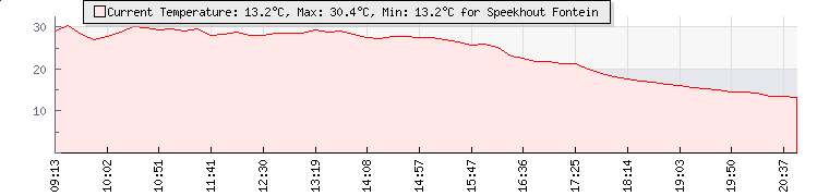 GPS Co-ordinates: | S 31º 57' 01, E 24º 57' 23 | ASL: | 4921 feet | Sunrise / Sunset: | 05:43 / 18:30 | Beaufort Scale: | Moderate Breeze |