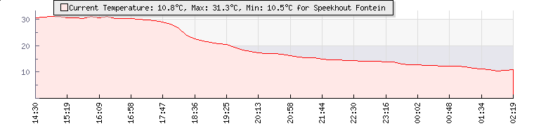 | GPS Co-ordinates: | S 31º 57' 01, E 24º 57' 23 | | ASL: | 4921 feet | | Sunrise / Sunset: | 05:10 / 19:03 | | Beaufort Scale: | Light Air |