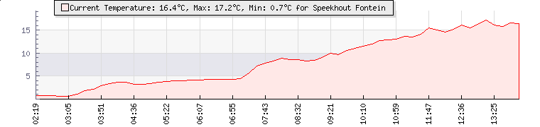 | GPS Co-ordinates: | S 31º 57' 01, E 24º 57' 23 | | ASL: | 4921 feet | | Sunrise / Sunset: | 06:45 / 17:52 | | Beaufort Scale: | Light Breeze |