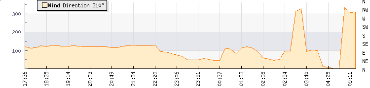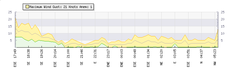 In the last few minutes the wind was North Easterly at an average speed of 3 knots, reaching up to 6 knots and a low of 0 knots. The gust strength is6 knots above the minimum speed |