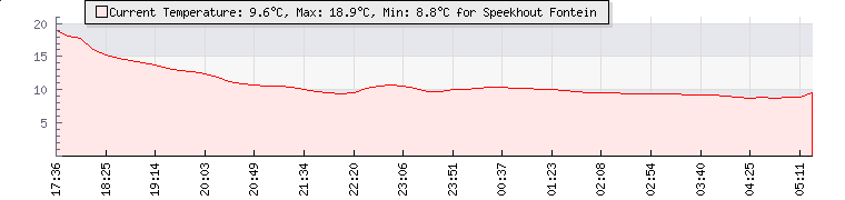 | GPS Co-ordinates: | S 31º 57' 01, E 24º 57' 23 | | ASL: | 4921 feet | | Sunrise / Sunset: | 05:12 / 18:58 | | Beaufort Scale: | Light Air |