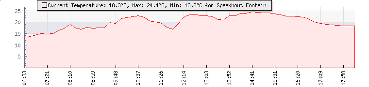 | GPS Co-ordinates: | S 31º 57' 01, E 24º 57' 23 | | ASL: | 4921 feet | | Sunrise / Sunset: | 06:48 / 17:49 | | Beaufort Scale: | Fresh Breeze |