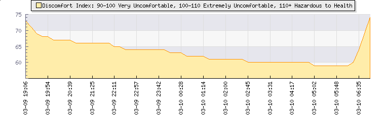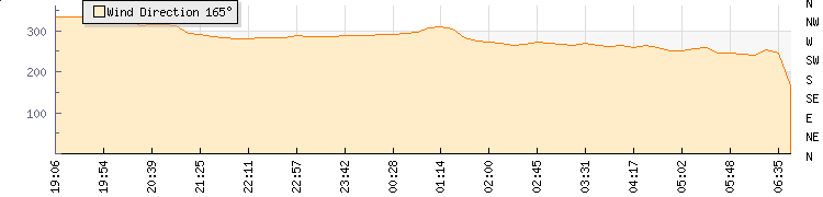 In the last few minutes the wind was Westerly at an average speed of 6 mph, reaching up to 11 mph and a low of 2 mph. The gust strength is9 mph above the minimum speed |