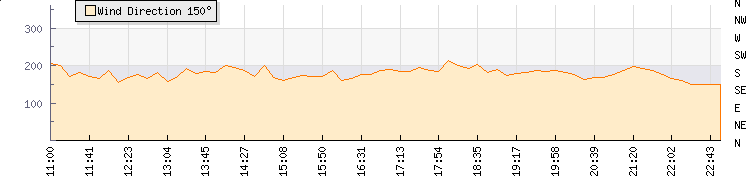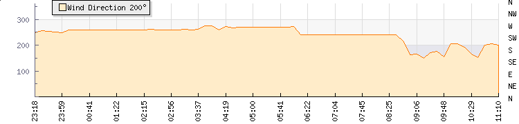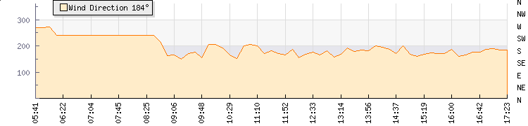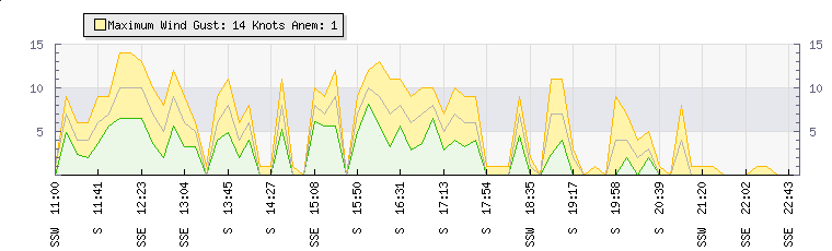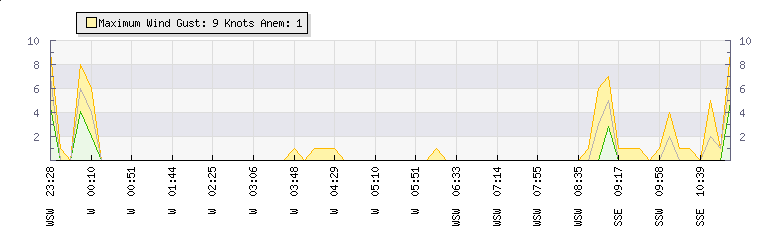 In the last few minutes the wind was Southerly at an average speed of 7 knots, reaching up to 9 knots and a low of 5 knots. The gust strength is4 knots above the minimum speed |