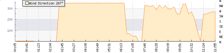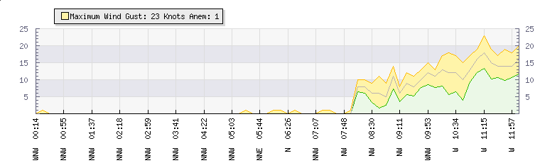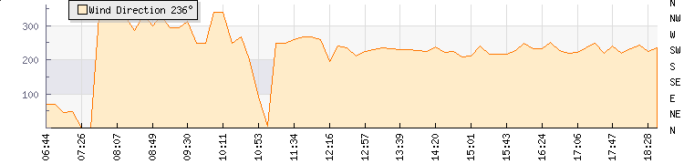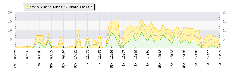 In the last few minutes the wind was South Westerly at an average speed of 7 knots, reaching up to 11 knots and a low of 3 knots. The gust strength is8 knots above the minimum speed |