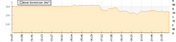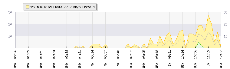 In the last few minutes the wind was North Westerly at an average speed of 0 kmh, reaching up to 0 kmh and a low of 0 kmh. The gust strength is0 kmh above the minimum speed |