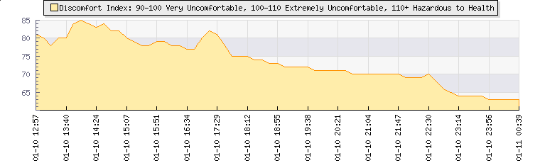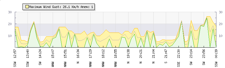 In the last few minutes the wind was Westerly at an average speed of 5 kmh, reaching up to 10 kmh and a low of 1 kmh. The gust strength is9 kmh above the minimum speed |