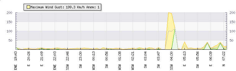 In the last few minutes the wind was Southerly at an average speed of 1 kmh, reaching up to 3 kmh and a low of 0 kmh. The gust strength is3 kmh above the minimum speed |