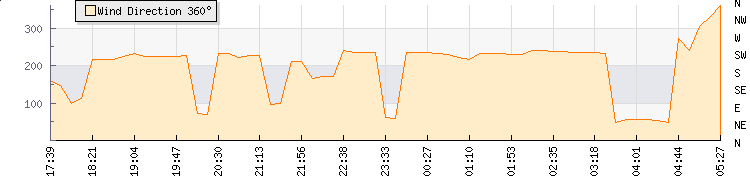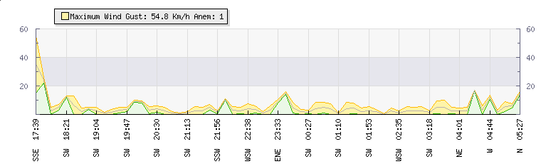 In the last few minutes the wind was South Westerly at an average speed of 4 kmh, reaching up to 8 kmh and a low of 0 kmh. The gust strength is8 kmh above the minimum speed |