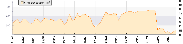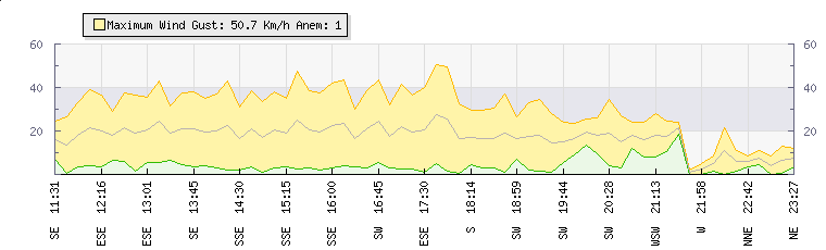 In the last few minutes the wind was Westerly at an average speed of 3 kmh, reaching up to 5 kmh and a low of 0 kmh. The gust strength is5 kmh above the minimum speed |