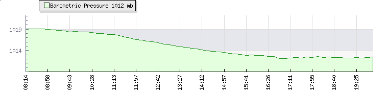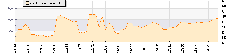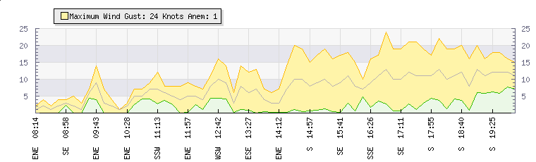 In the last few minutes the wind was Southerly at an average speed of 12 knots, reaching up to 20 knots and a low of 4 knots. The gust strength is16 knots above the minimum speed |