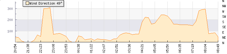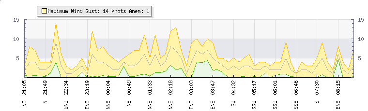 In the last few minutes the wind was Southerly at an average speed of 3 knots, reaching up to 5 knots and a low of 0 knots. The gust strength is5 knots above the minimum speed |