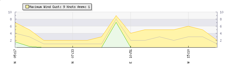 In the last few minutes the wind was East South East at an average speed of 3 knots, reaching up to 5 knots and a low of 0 knots. The gust strength is5 knots above the minimum speed |