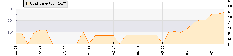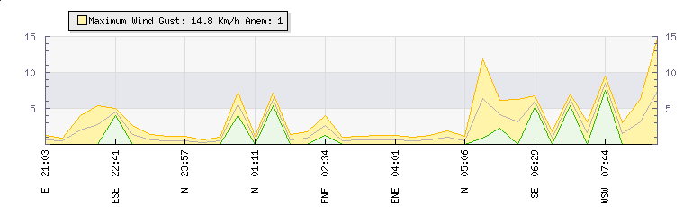 In the last few minutes the wind was Northerly at an average speed of 1 kmh, reaching up to 1 kmh and a low of 0 kmh. The gust strength is1 kmh above the minimum speed |
