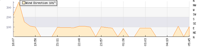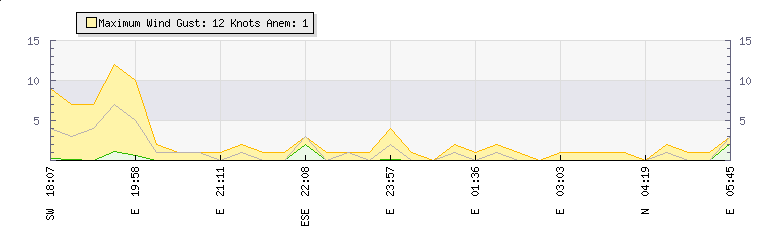 In the last few minutes the wind was Easterly at an average speed of 1 knots, reaching up to 1 knots and a low of 0 knots. The gust strength is1 knots above the minimum speed |