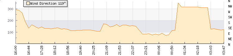 In the last few minutes the wind was North Westerly at an average speed of 3 kmh, reaching up to 6 kmh and a low of 1 kmh. The gust strength is5 kmh above the minimum speed |