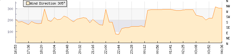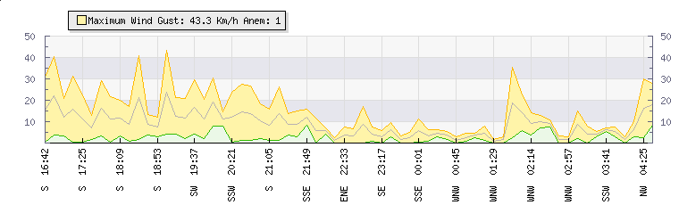 In the last few minutes the wind was West North West at an average speed of 9 kmh, reaching up to 11 kmh and a low of 8 kmh. The gust strength is3 kmh above the minimum speed |