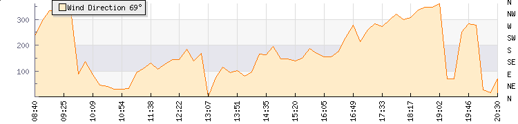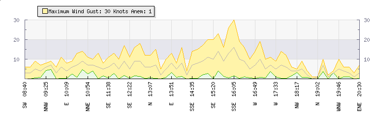In the last few minutes the wind was North Westerly at an average speed of 4 knots, reaching up to 5 knots and a low of 3 knots. The gust strength is2 knots above the minimum speed |
